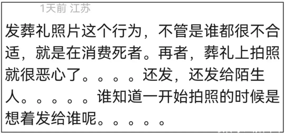 也有不少网友表示,发葬礼照片这个行为,才是真正的消费逝者。汪小菲顶多就是雨中下跪,但许雅钧和具俊晔,一个给粉丝发大S出殡照,一个在节目上公开大S墓地细节,上节目和粉丝晒墓地照的性质完全不同,上节目是有酬劳的,对明星也会有正向的宣传作用,这才是消费大S,利用大S盈利吧。
