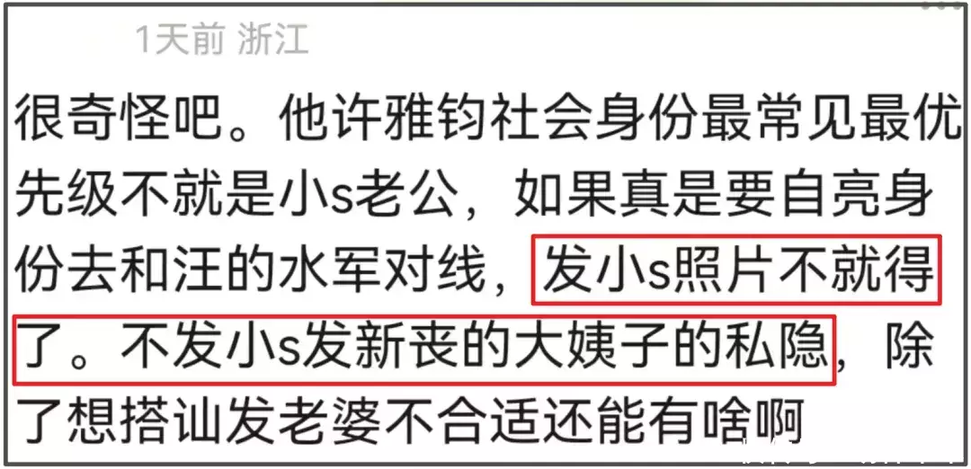 许雅钧想证明自己,为什么要发大S的出殡照?为啥不发小S在家痛哭祭拜的照片,不会没有吧?网友都想不出,许雅钧为什么要模糊自己“小S老公”的身份,而选择当“大S妹夫”。